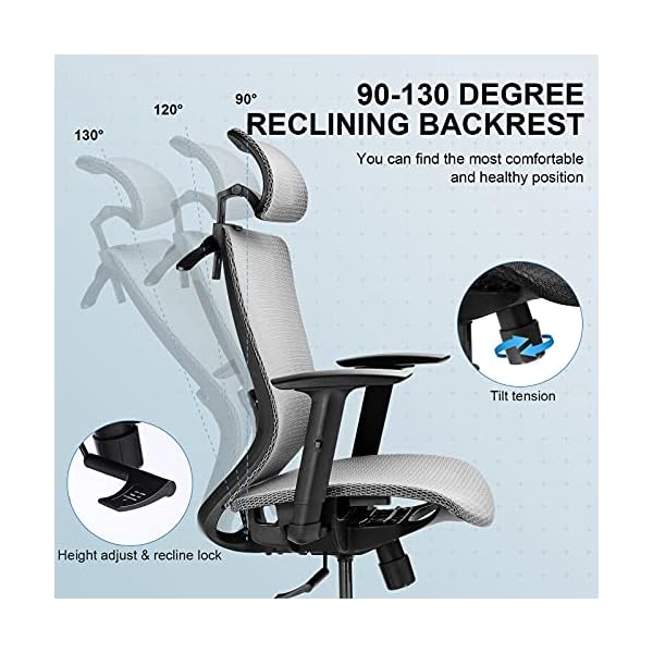 Komene Ergonomic Home Office Desk Chair Breathable Mesh High Back Desk Chairs Adjustable Headrest Tilt Recline Work Chair Office Desk Chair Home Office Desks